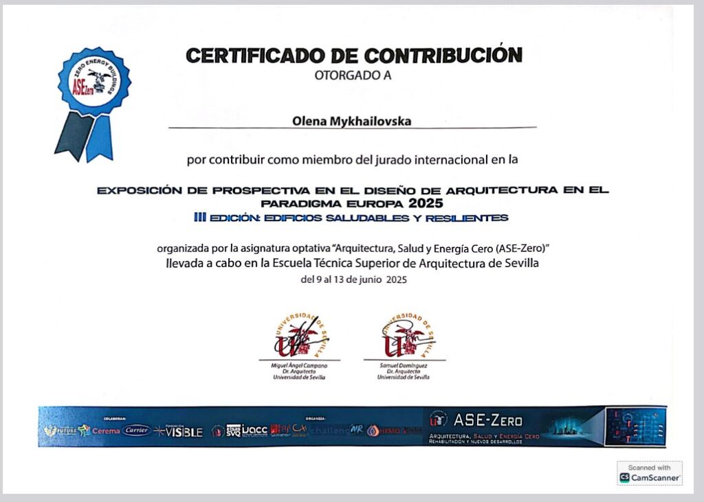 Олена Михайловська була запрошена як член міжнародного журі на виставці з архітектурної перспективи “Prospectiva en el diseño de arquitectura en el paradigma Europa 2050”.